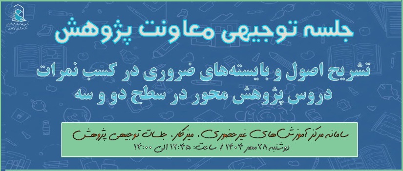 آدرس حضور برخط در جلسه: سامانه مرکز آموزشهای غیرحضوری> میز کار> جلسات توجیهی معاونت پژوهش
