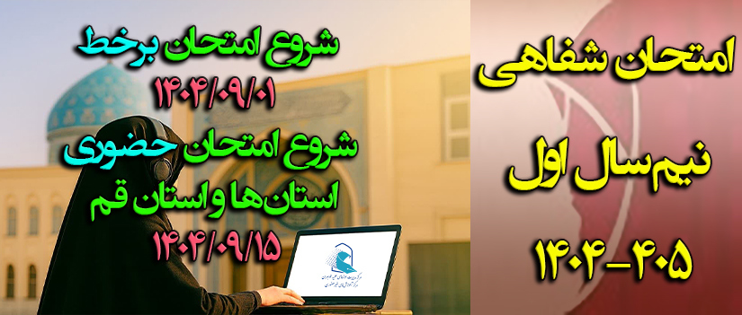 * طلاب گرامی که هنگام انتخاب حوزهی امتحان شفاهی، گزینهی (قم - مرکز آموزشهای غیرحضوری) را انتخاب نمودهاند، امتحان شفاهی آنها به صورت "برخط" برگزار میشود.