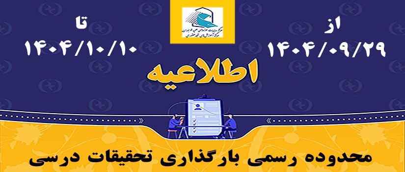همچنین یادآور میشود که سامانه جهت ارسال تحقیقات با محاسبه تاخیر و کسر نمره نیز از تاریخ 1404/10/11 تا 1404/10/12 فعال میباشد.