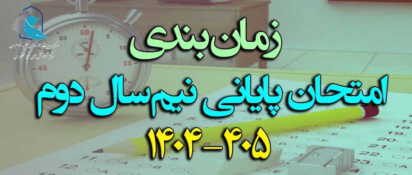 * برای دریافت جدول زمانبندی امتحان پایانی نیمسال دوم 405 - 1404 به پیوندهای زیر مراجعه و فایل آن را دریافت نمایید.