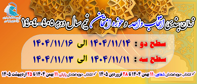 زمان شروع انتخاب واحد و انتخاب حوزه امتحانی (کتبی - شفاهی) نیمسال دوم از 11 بهمنماه میباشد.